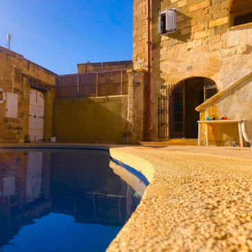 Every room has its own bathroom. The kitchen and dining area are shared. You also have unlimited access to the outdoor pool area during your stay.